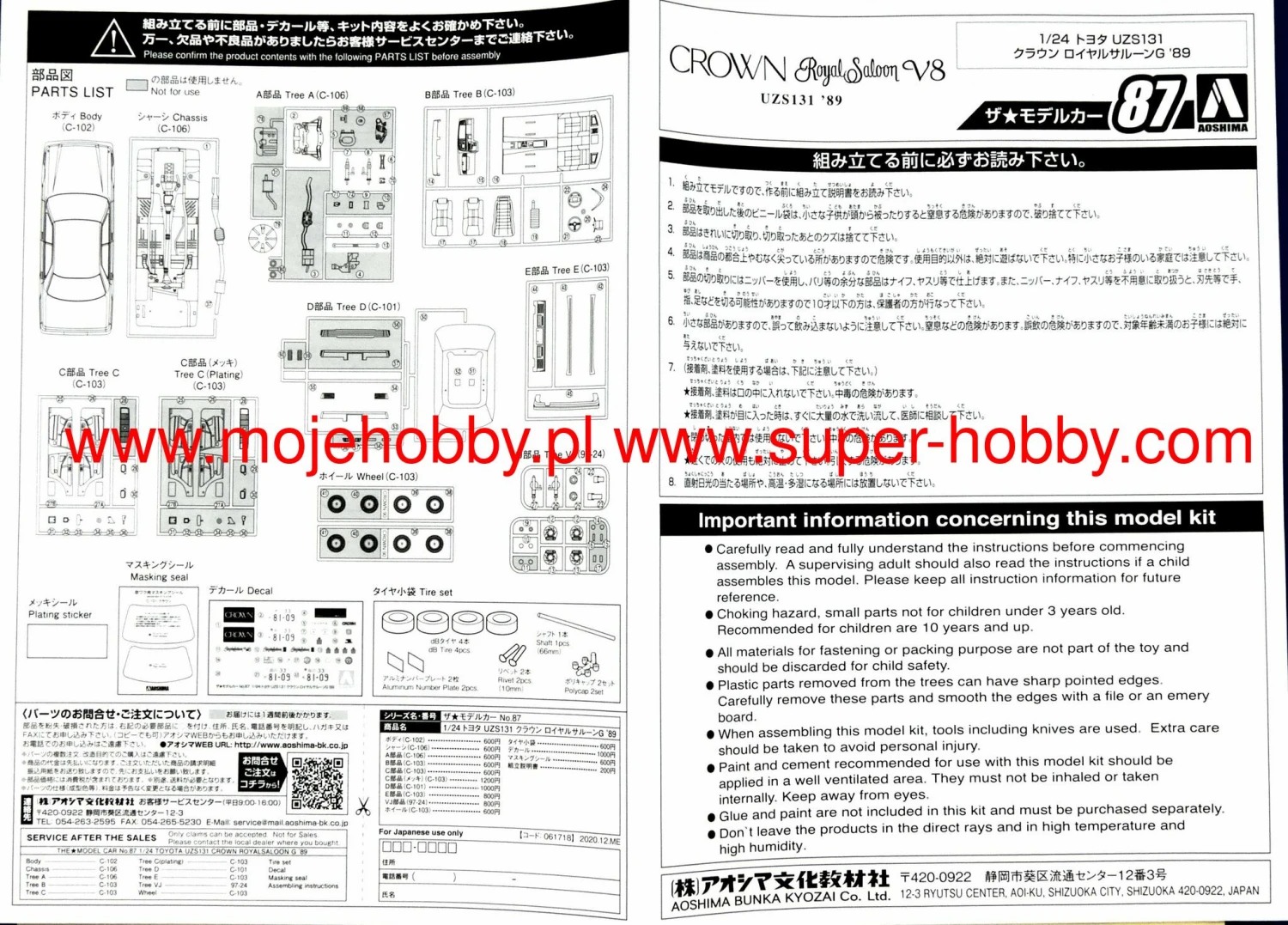 Be the first to review “Aoshima 06171 MC#87 Toyota UZS131 Crown RoyalSaloon V8 G ’89” Cancel reply